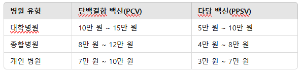 개인 병원에서는 비교적 저렴한 비용으로 접종할 수 있으며, 대학병원이나 종합병원은 진료비와 함께 백신 비용이 추가될 수 있습니다.